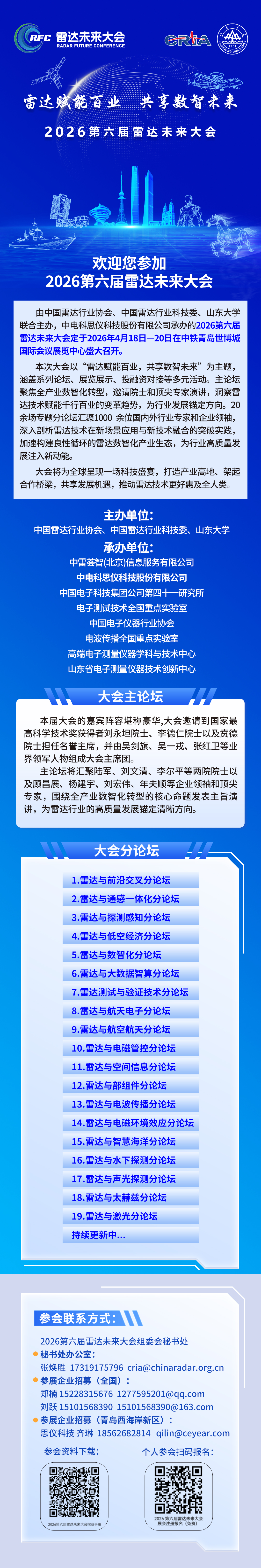 2026第六届雷达未来大会定于2026年4月18日-20日在中铁青岛世博城国际会议展览中心盛大召开